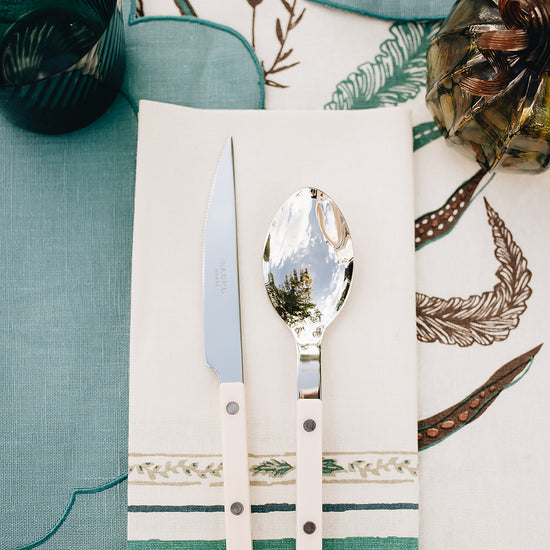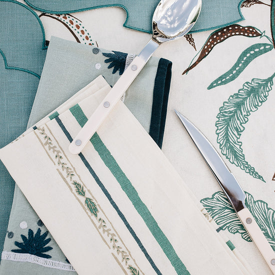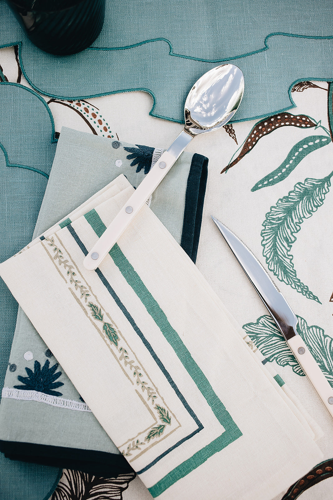 With a border of meandering leaves and vines, the Botany napkin paired with our Holly Vine tablecloth creates a table-scape reminiscent of spring in bloom.