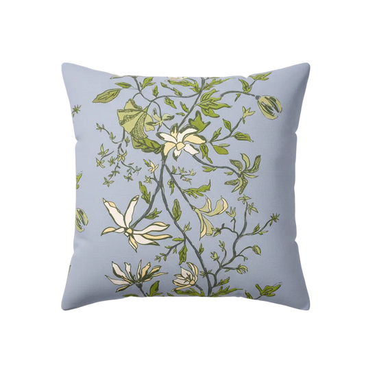 Camille is a large-scale floral that brings chic whimsicality and intricate detail to interiors. Available in 6 striking new colorways for the brand, this design almost leaps off the fabric with its twisting vine and wild blooms. When I was creating this pattern, I wanted to design something that could be a big star or interesting supporting character in interiors. Each palette evokes an entirely different feeling, and uses shades that are new from what we've come to expect from the designer. Camille's colorways are soft, while remaining bold and bring in new colors previously unavailable across the line: chocolate, olive, marigold and peach.