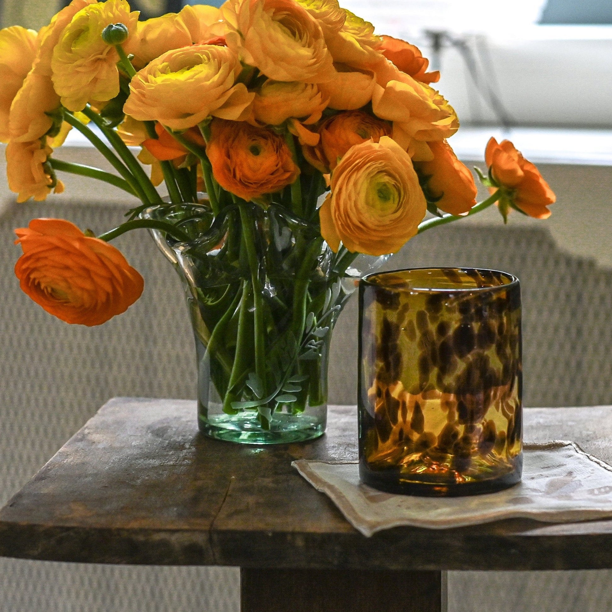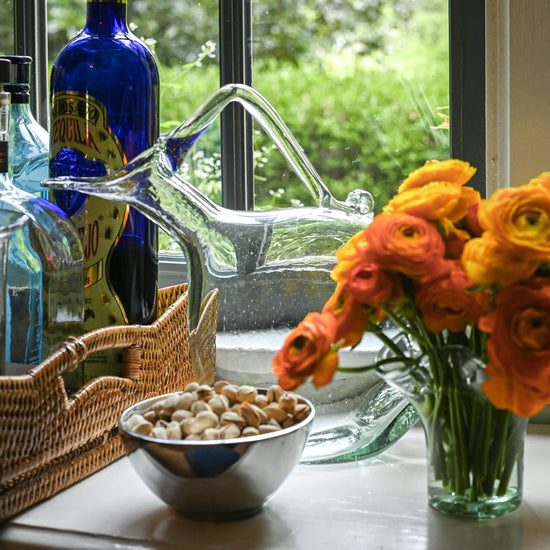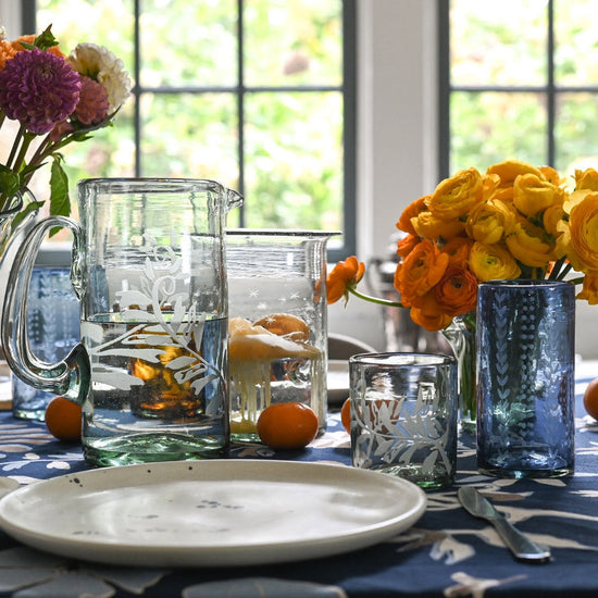 This collaboration features five glass tabletop essentials - an ice bucket, a pitcher, two vases and rocks glasses. Each piece features a fern motif, which was lifted from the collaboration table linens. All pieces are hand-made, thus embodying the spirit of the collection - one that celebrates heritage and pays homage to craft.