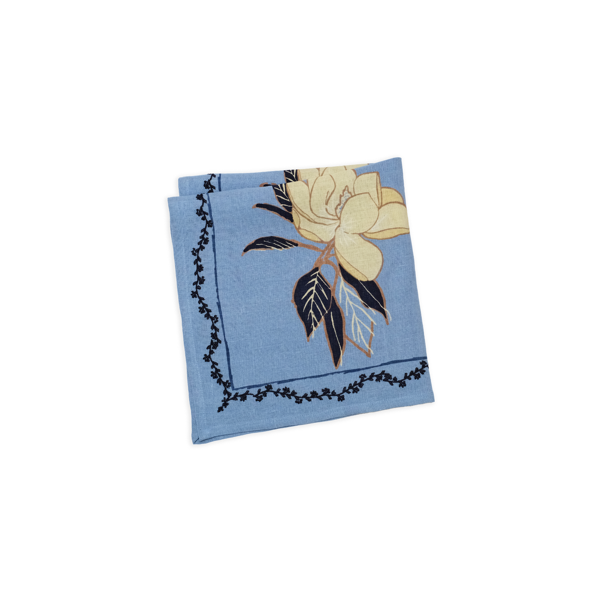 Our beloved Magnolia napkin is now available with embroidery. The embroidered vine trim adds a special detail to a linen you'll use during special occasions.