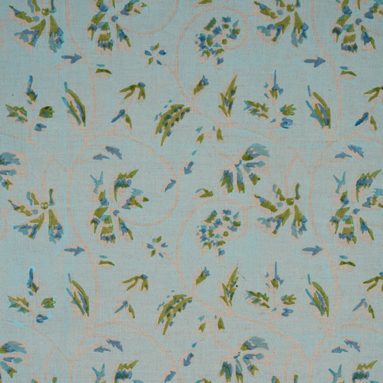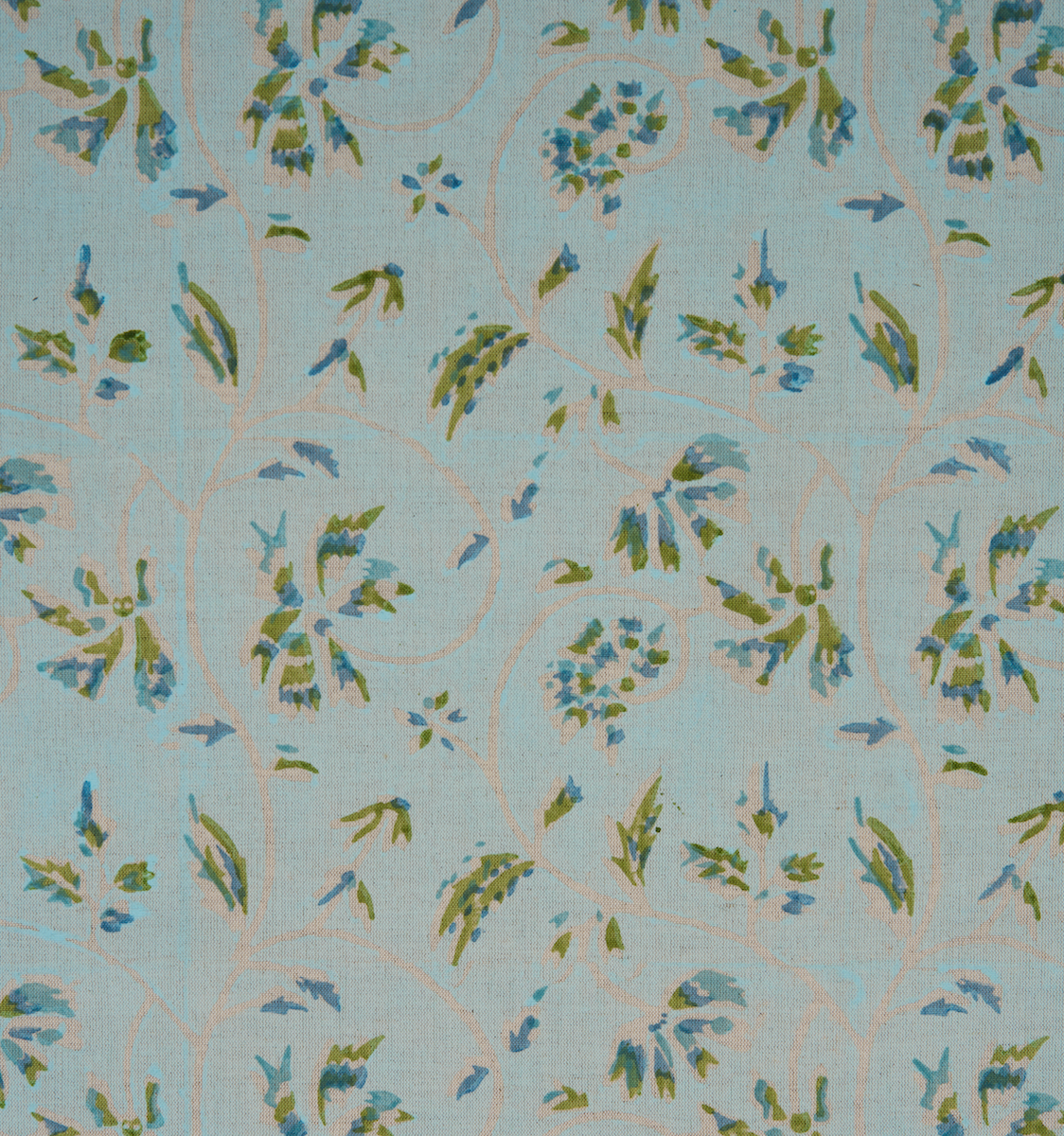 Marguerite is a block-printed botanical vine pattern available in eight colorways. The imagined leaf-like floral blooming across the undulating vine was inspired by arid gardens in southern India. Marguerite is a mid-scale whimsical pattern that was designed to be leveraged as a visual focal point or a layer easily paired with other patterns and textures across an interior.