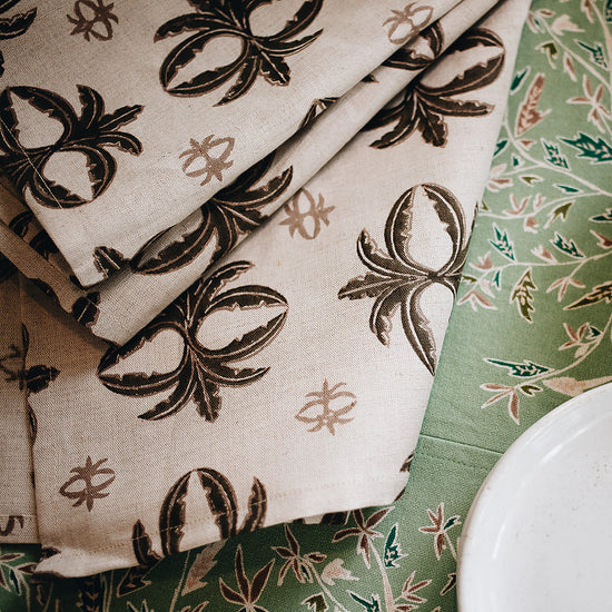 This hand blocked design celebrates the organic and imperfect nature of the hand printing process.