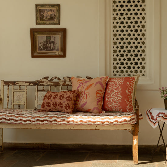 This hand blockprinted design celebrates the organic and imperfect nature of the hand printing textile process.