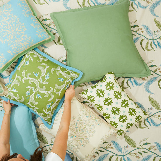 A tropical play on the fleur de lis, our Prytania linen pillow is geometric at its core. Prytania is the perfect compliment to any other Maison Venu design.