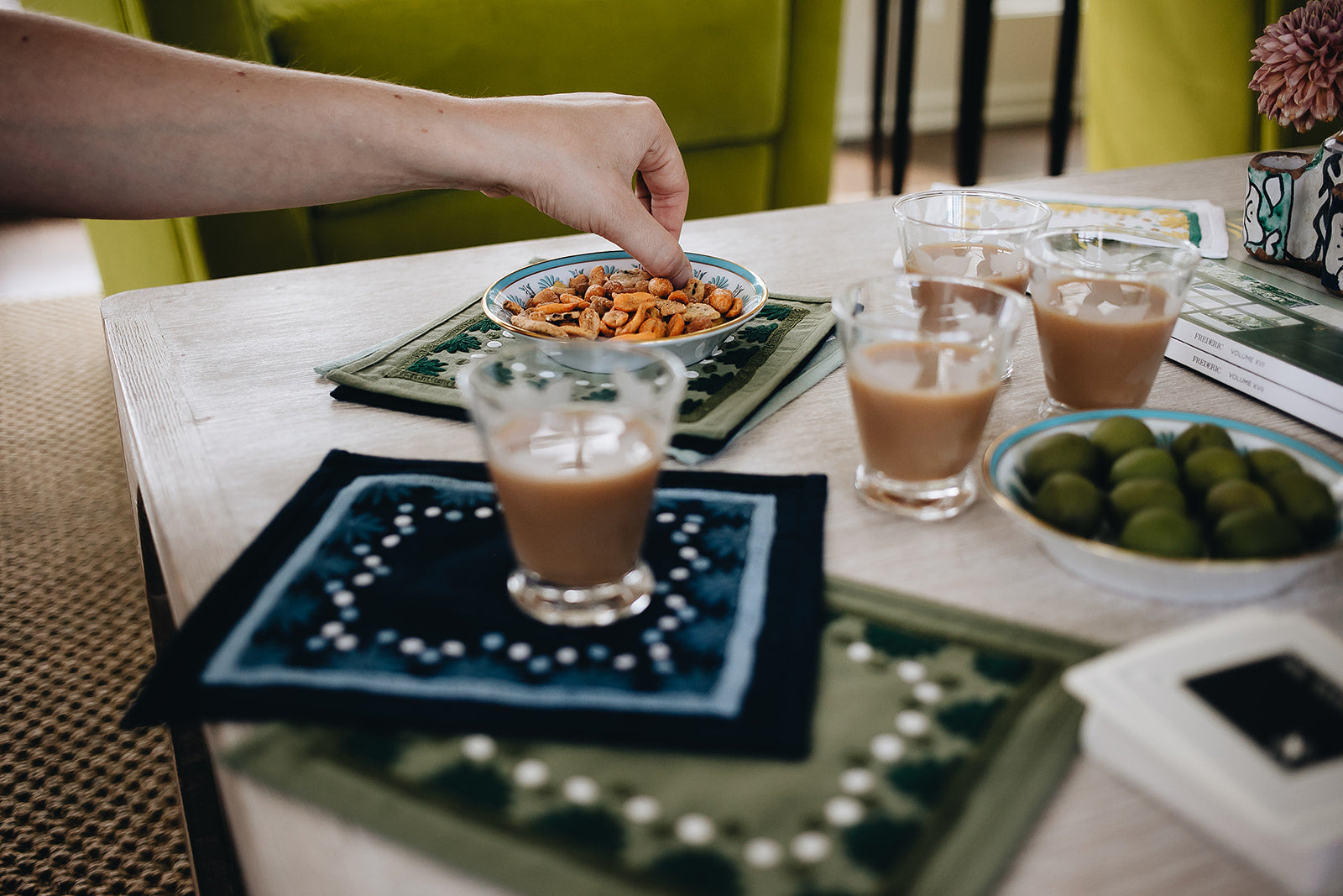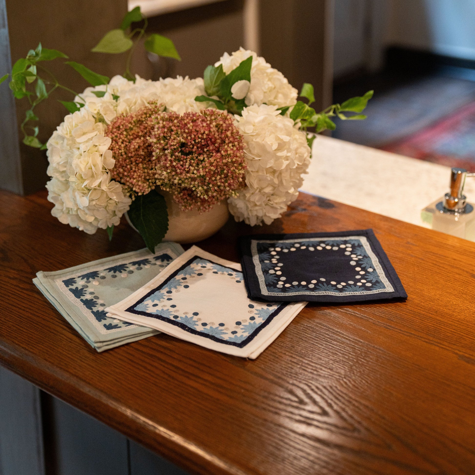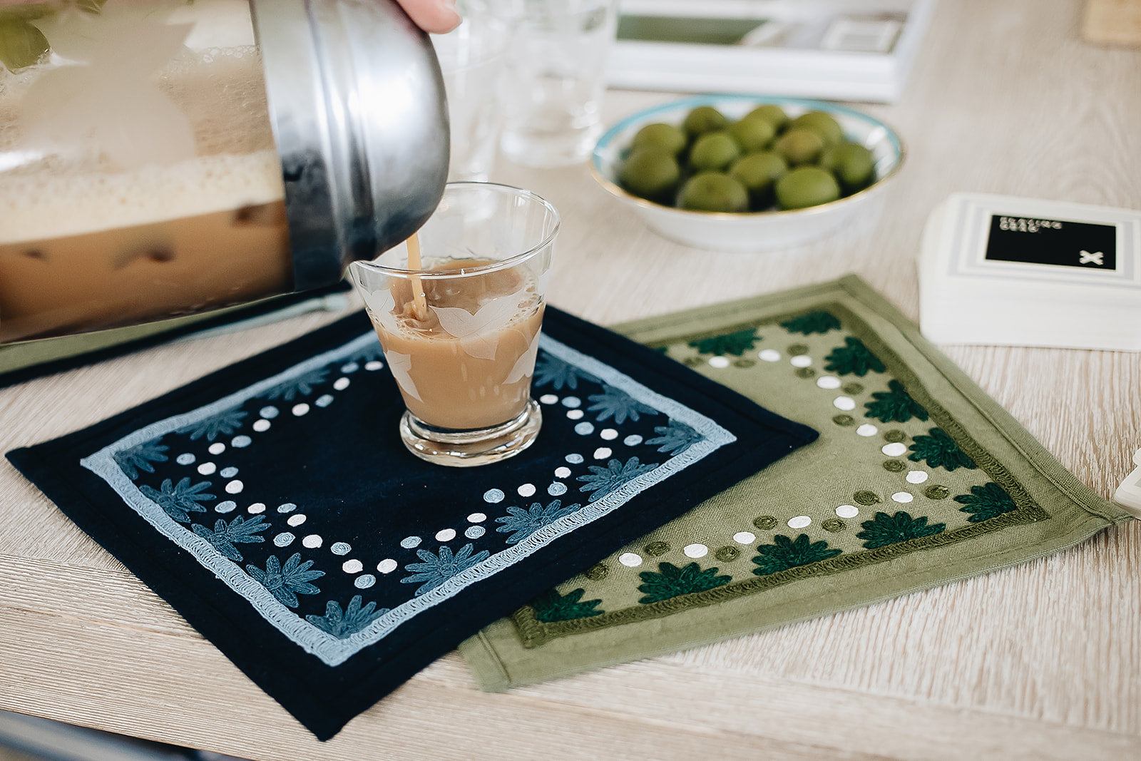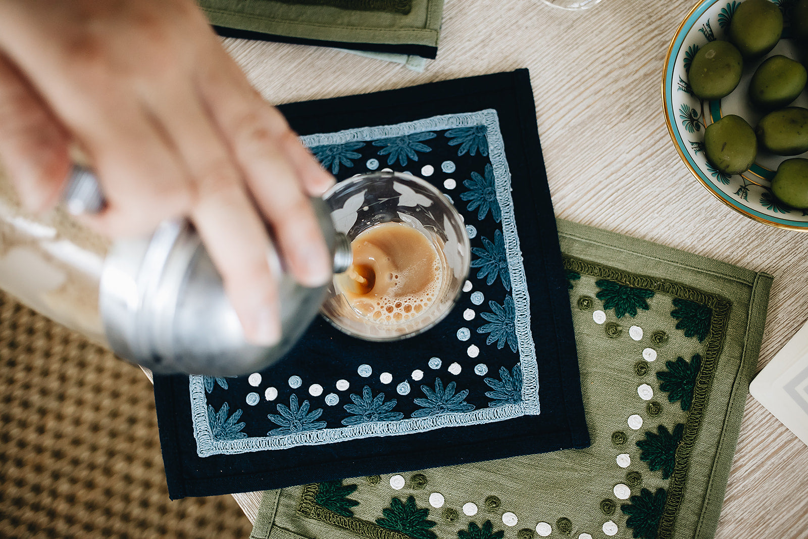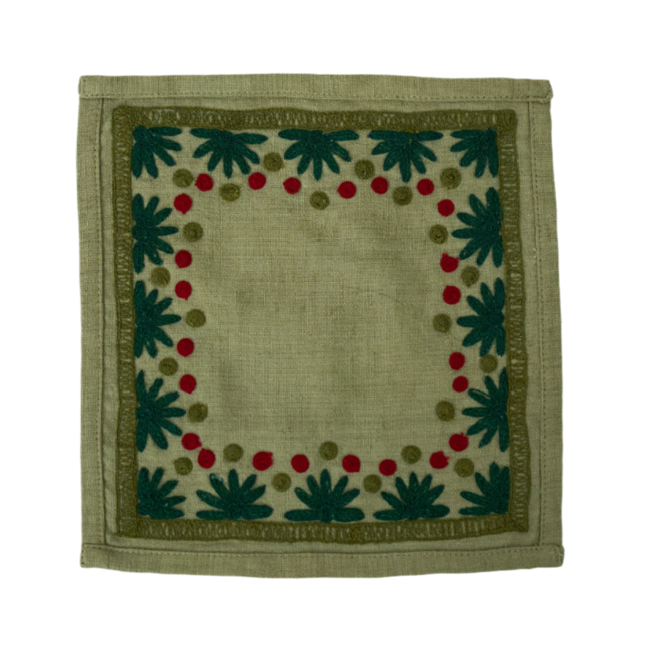 Our first cocktail napkin! Our Starburst design is created using an artisanal chain stitch embroidery technique. This embroidery resembles the techniques used to create original Suzani textiles. Colorful and sophisticated, our Starburst cocktail napkin add a punch of color to any summer table.